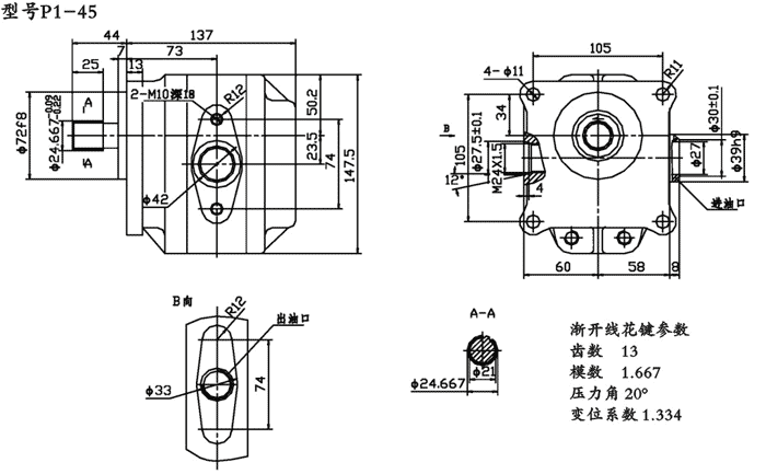 P1-45變速齒輪油泵是一種低壓泵,具有體積小,重量輕,噪音低,結構簡(jiǎn)單,工作可靠等特點(diǎn),主要應用于上海彭浦推土機變速系統。
