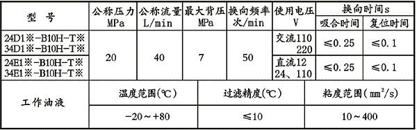 | 注:M型滑閥的流量為25L/min;油液最高污染等級按GB/T14039之19/16 |