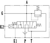 工作原理及圖形符號: 操縱氣閥使壓縮空氣進(jìn)入HLQ-L20H型氣動(dòng)控制閥氣缸體K1口時(shí),壓縮空氣通過(guò)氣缸活塞推動(dòng)閥芯移動(dòng),進(jìn)油口P與工作油口A(yíng)接通,壓力油從P口經(jīng)過(guò)A口進(jìn)入舉升缸,使車(chē)廂開(kāi)始舉升;操縱氣閥切斷壓縮空氣進(jìn)入HLQ-L20H型氣動(dòng)控制閥氣缸體時(shí),該閥閥芯在彈簧力作用下回到中位,壓力油從P口經(jīng)過(guò)T口回油箱,停止向舉升缸供油,車(chē)廂中停;操縱氣閥使壓縮空氣進(jìn)入HLQ-L20型氣動(dòng)控制閥氣缸體K2口時(shí),壓縮空氣通過(guò)氣缸活塞拉動(dòng)閥芯移動(dòng),壓力油從P口經(jīng)過(guò)T口回油箱的同時(shí),舉升缸的液壓油也從A口經(jīng)過(guò)T口回油箱,車(chē)廂在自重的作用下開(kāi)始下降。