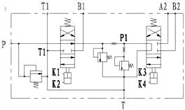 舉升泵供油進(jìn)入QDF-L20型氣控多路閥后,通過(guò)操作氣控操作閥不同位置,讓壓縮空氣分別進(jìn)入該閥所帶氣缸,當推動(dòng)舉升閥閥芯時(shí),可實(shí)現車(chē)箱舉升、中停、下降等功能;當推動(dòng)換向閥閥芯時(shí),可實(shí)現車(chē)箱頂蓋開(kāi)啟、閉合等功能。