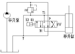 在舉升過(guò)程中,舉升泵輸入的液壓油全流量進(jìn)入舉升缸;在頂蓋開(kāi)啟、關(guān)閉過(guò)程中,舉升泵輸入的液壓油經(jīng)過(guò)分流閥后,分流出一部分(30L/min)進(jìn)入頂蓋油缸,其余的液壓油流回油箱。