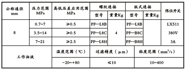 特征與用途: PF型壓力繼電器是用于電氣液壓控制系統中,把壓力訊號轉換為電氣訊號的一種發(fā)送裝置。PF型壓力繼電器有高、低二個(gè)控制壓力,能發(fā)送兩個(gè)訊號,可用于系統和元件的壓力控制保護,以實(shí)現原動(dòng)機或執行機構的工作、卸荷、換向及停止等工況的自動(dòng)化。
