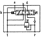 當氣控口b接通氣源,推動(dòng)氣控抉向閥的閥芯至下降位置使車(chē)廂舉升下降,同時(shí)泵卸荷。